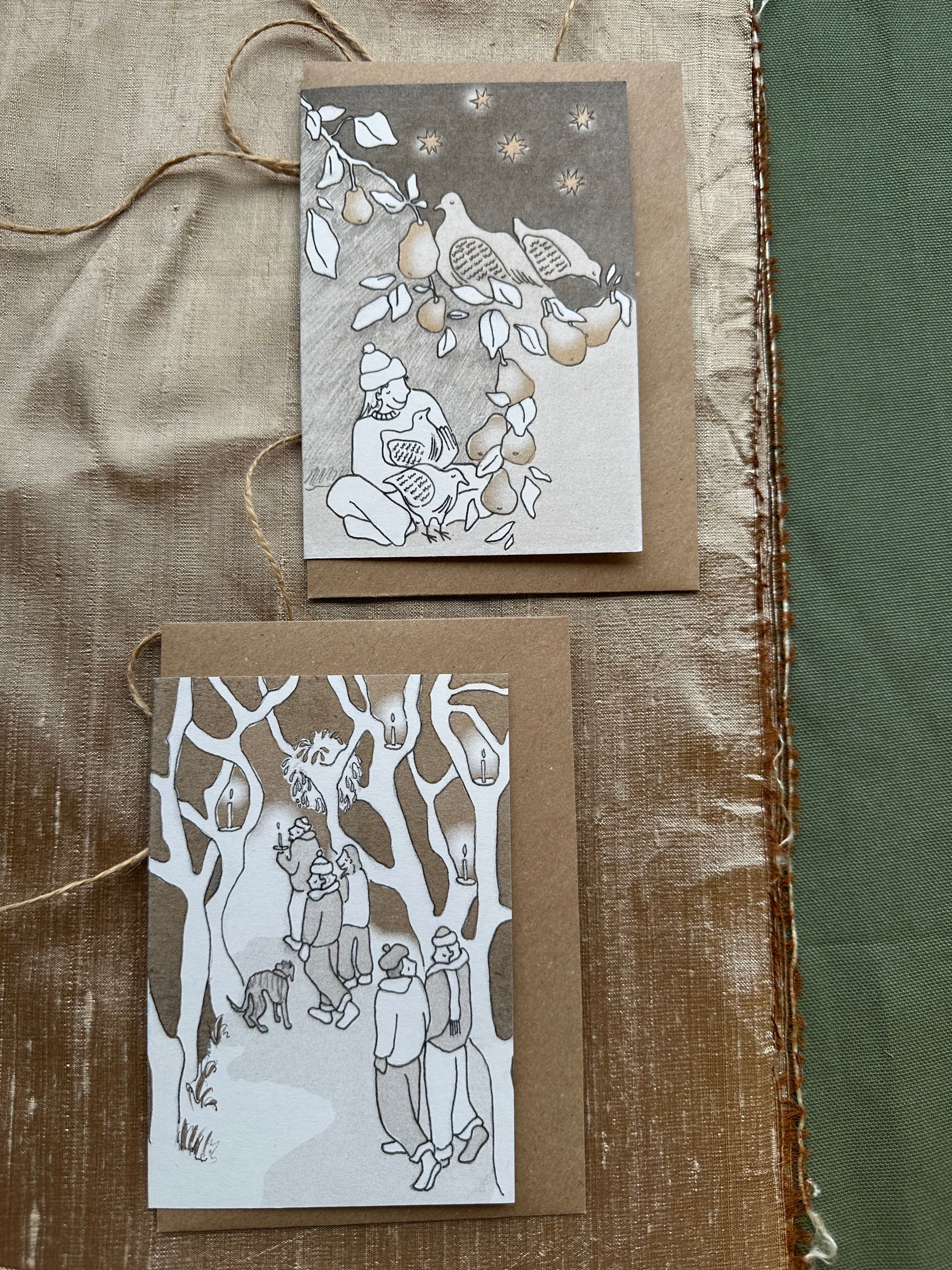 A four pack of my riso printed christmas cards.