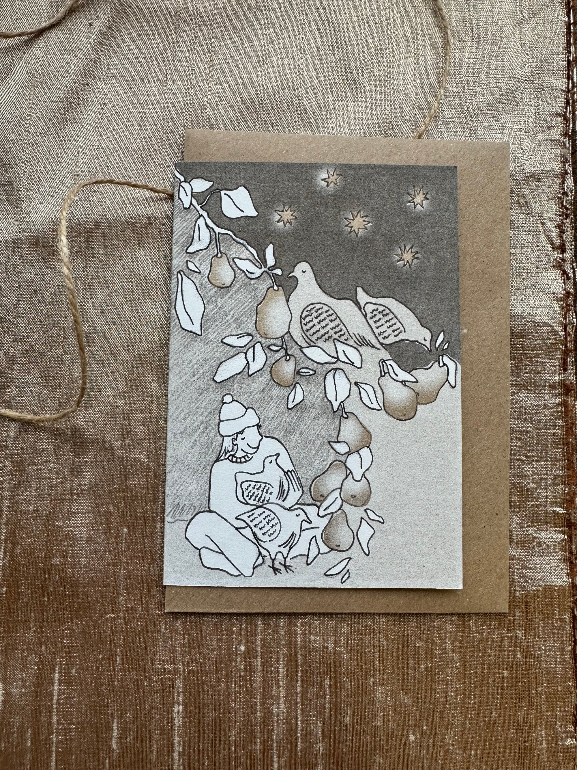 These cards are printed with two colour layers - black and gold, and by the nature of the riso printing process each card is a little different and has a hand printed feel.